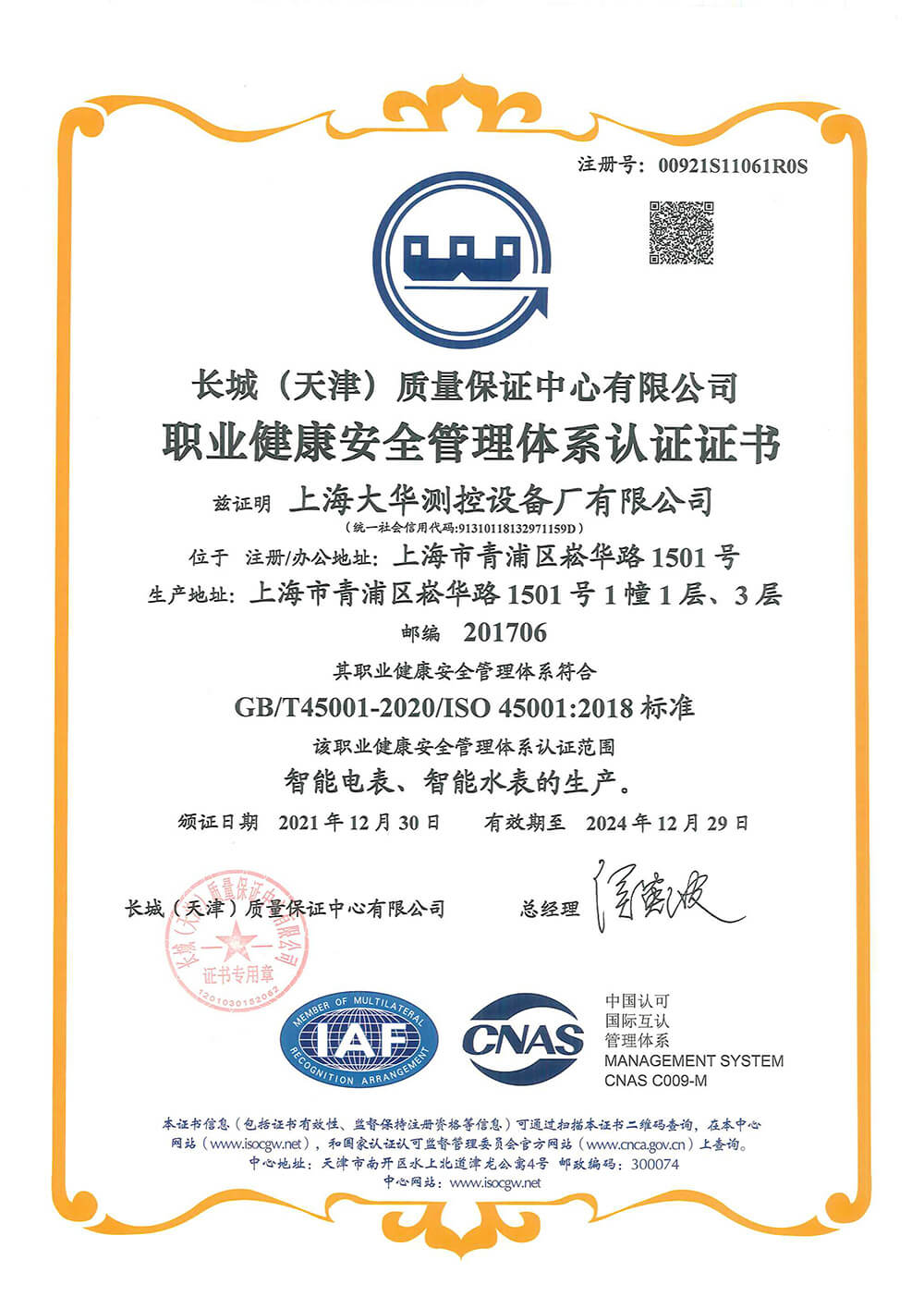 2020年 UCCS测量管理体系认证证书;